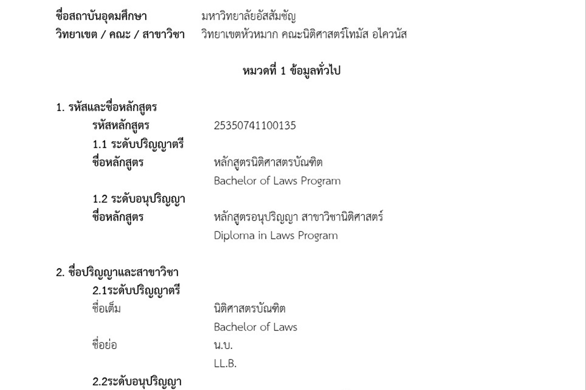 Bachelor of Laws Program