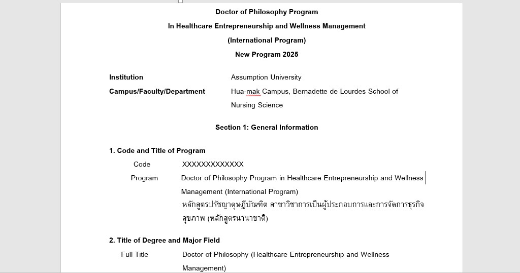 Doctor of Philosophy Program in Healthcare Entrepreneurship and Wellness Management
